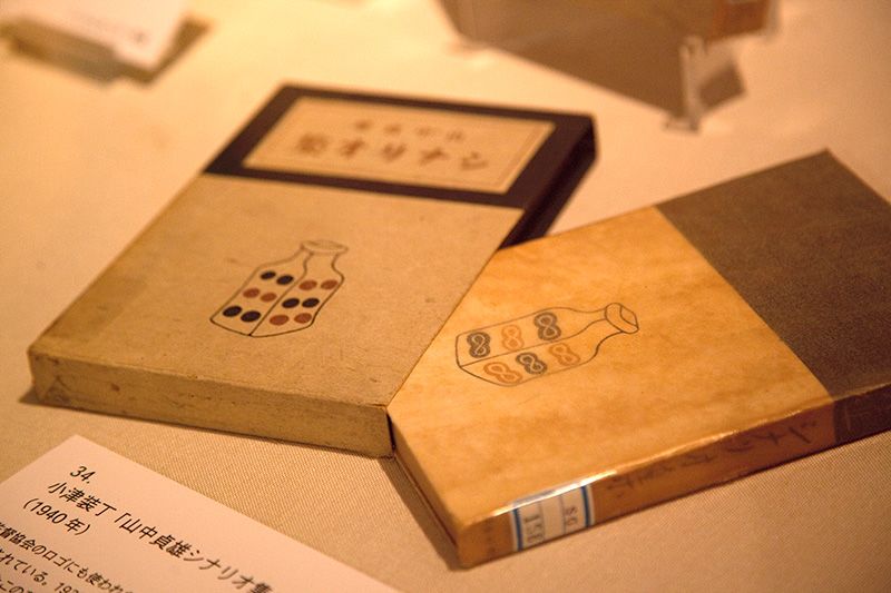 En la exposición se puede apreciar el genio gráfico de Ozu en los libros a los que dio formato. En la recopilación Yamanaka Sadao shinario shū (Colección de guiones de Yamanaka Sadao), publicada tras la muerte del director Yamanaka Sadao, se introdujo el logo de la Asociación de Directores de Cine de Japón, la ya inmortal marca “∞”, que diseñara Ozu. Yamanaka y Ozu se habían reencontrado en el frente de combate, durante la Guerra, y a través de ese diseño se pueden sentir los recuerdos que Ozu compartió con su joven amigo, que perdió la vida con tan solo veintiocho años.