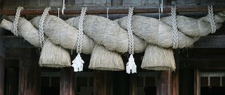 Entre las distintas formas de escribir shimenawa en japonés, hay una que incluye los kanji de siete, cinco, tres y cuerda. Se trata de una cuerda especial que puede tenderse o colocarse rodeando un espacio para indicar que se trata de un recinto sagrado y puro.La caseta de abluciones