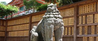 Los komainu son un par de estatuas de piedra de unos shishi que están situadas a ambos lados de la entrada al santuario o frente al pabellón principal.Haiden