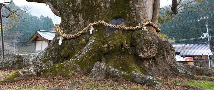 Estas raíces aéreas se denominan normalmente chichi u oppai (tetas) pero aquí, en el municipio de Nagi, reciben el nombre de rengi, forma dialectal de la palabra japonesa surikogi (mano de mortero), y su parecido con este objeto es innegable. Esta comarca es de copiosas nevadas y, según se dice, en la era Tenmei (1781-1789) una gran rama que se extendía hacia el norte cedió al peso de la nieve hasta quedar en contacto con el suelo, de donde surgió un nuevo tronco. Una buena muestra de la asombrosa vitalidad que tiene el ichō.