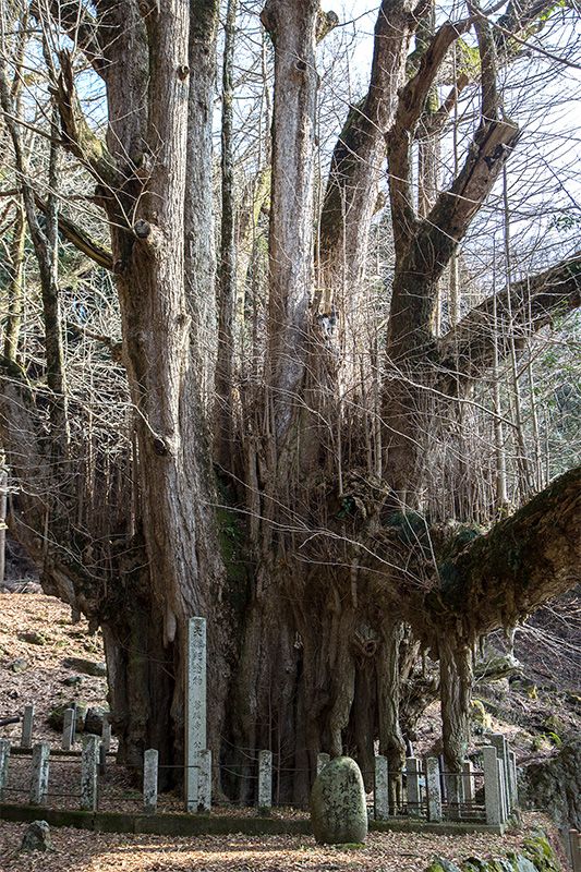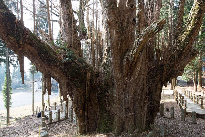 Durante algún tiempo, el templo quedó abandonado y su recinto ofrecía una ruinosa imagen, pero ahora luce tan bello que parece otro, pues es objeto de un cuidadoso mantenimiento y además de parking tiene también servicios. Alrededor del árbol se han instalado corredores de madera elevados sobre estacas para evitar dañar las raíces, una muestra del celo con que está siendo preservado. Muestra el gigante, como es típico en los ichō de sexo masculino, unas magníficas raíces aéreas, raíces que se extienden a partir del tronco y de las ramas. Las que cuelgan de una gran rama horizontal a modo de innumerables estalactitas son realmente inigualables. Da la sensación de que cada una de esas raíces fuera extendiéndose por propia voluntad.