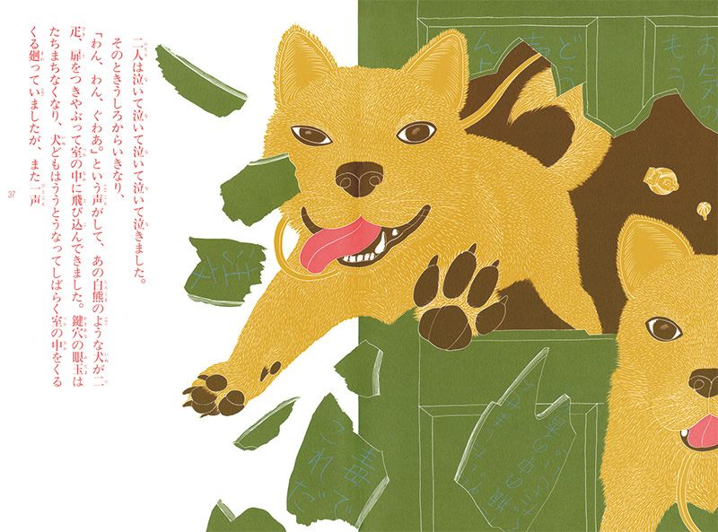 Portadas de Kaeru no shōmetsu (La desaparición de las ranas) y de Zashikibokko no hanashi (Cuentos de los zashikibokko).
