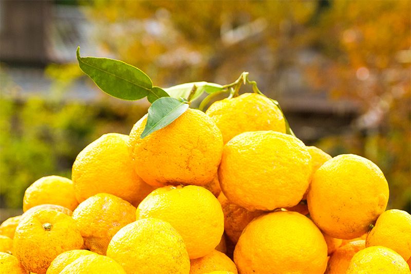 La mitad de todos los yuzus que se consumen en Japón son cultivados en Kōchi, una prefectura que se enorgullece de ser la mayor productora del país. Umaji, un pueblo que ha venido luchando por su revitalización con el yuzu desde la década de 1960, se encuentra en la montaña, a unas dos horas de carretera desde el aeropuerto de Kōchi. La responsable de las relaciones públicas del pueblo, Honzawa Yuki, recuerda que bañarse con yuzus “no es solo cosa del solsticio de invierno, sino que también lo hacemos durante los días fríos de esta estación”. Honzawa afirma que “su aroma es delicioso, y al salir del baño se nota cómo el cuerpo ha entrado en calor. Yo sigo bañándome en el yuzuyu a menudo.”