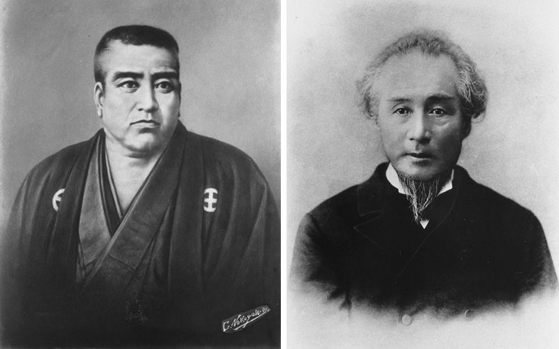 (A la izquierda) Saigō Takamori. (A la derecha) Katsu Kaishū. (Fotografía por cortesía del sitio web de la biblioteca de la Dieta)
