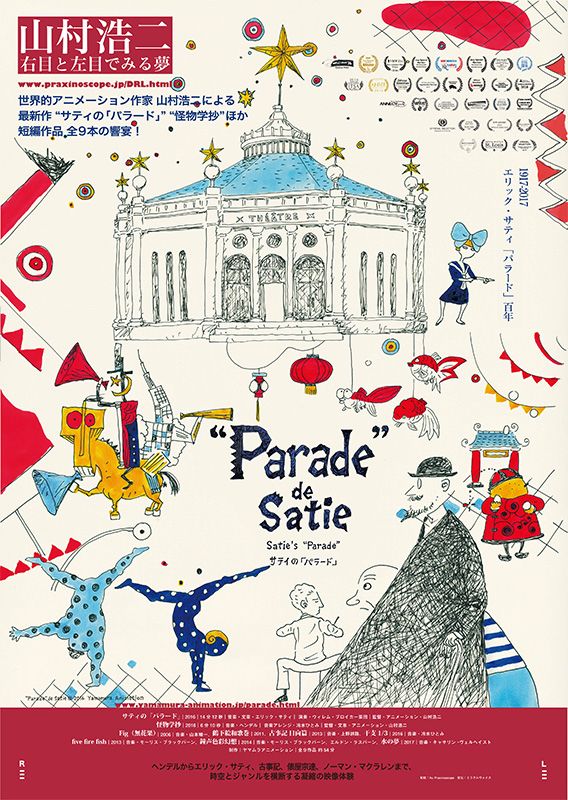 Entre las nueve obras que se proyectan este verano se encuentra Sati no “parādo” (El desfile de Satie, 14:12). Yamamura creó esta película en 2016, el 150 aniversario del nacimiento del compositor francés Erik Satie, utilizando su ballet Parade; el cortometraje ha sido proyectado en festivales de cine de todo el mundo.