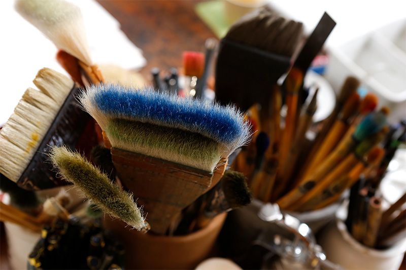 Todo tipo de pinceles y brochas en el estudio de Yamamura en el distrito de Setagaya, Tokio