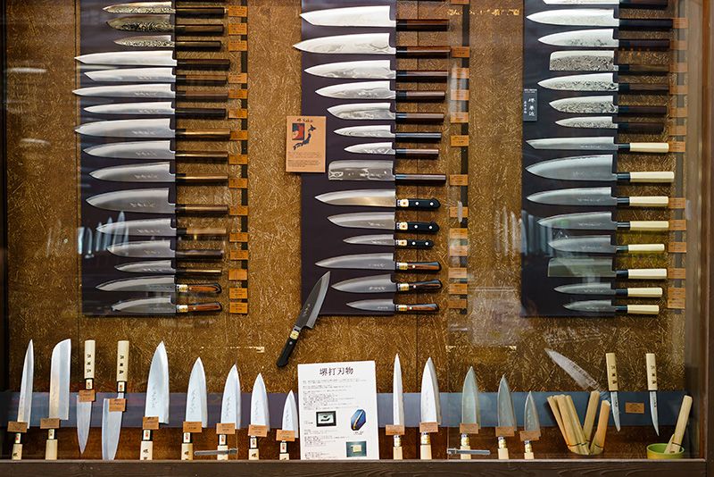 En muchos de los lugares donde hoy en día se elaboran cuchillos antes solían fabricarse espadas. Con la progresiva pacificación del país en el período Edo y la puesta en vigor del Edicto de Abolición de Espadas (1876) en la era Meiji, la demanda de armas de corte fue decayendo y los maestros espaderos derivaron hacia la fabricación de utensilios de uso doméstico como cuchillos y tijeras.