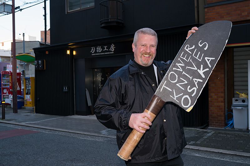 Así nos lo explica Björn Heiberg, canadiense criado en Dinamarca. Björn llegó a Japón a los 23 años y se casó con una japonesa. Tras ejercer como profesor de inglés durante un tiempo, se puso al frente de un negocio de limas. Fue en aquella época cuando un cliente de Sakai (prefectura de Osaka) le regaló un juego de cuchillos japoneses que le cautivó. Más tarde pasó nueve años trabajando para un fabricante de cuchillas, periodo en el que conoció a artesanos cuchilleros de todo Japón y quedó fascinado con su técnica impecable. Finalmente en 2011 abrió su propia tienda de wabōchō en la zona de Shinsekai de la ciudad de Osaka. Bautizó el negocio como Tower Knives Osaka por la cercanía con la emblemática torre Tsūtenkaku.