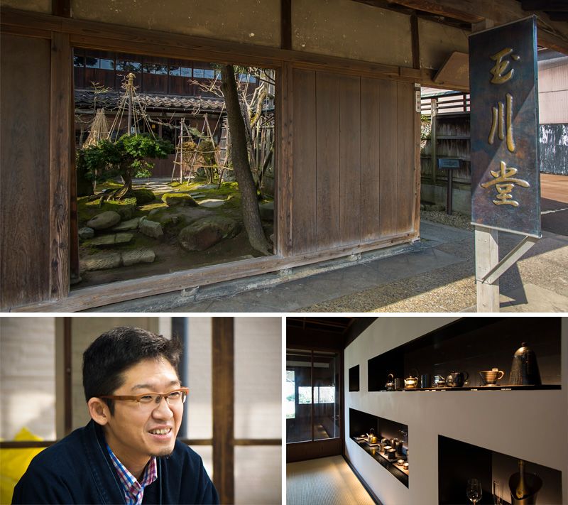 Arriba: El edificio que acoge la sede central de Gyokusendo en Tsubame figura en la lista del Patrimonio Cultural de Japón. Abajo a la izquierda: Yamada Ritsu, director de Gyokusendo. Abajo a la derecha: Piezas representativas expuestas en los estantes del establecimiento.