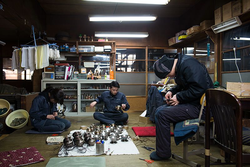 Visitamos la sede central de Gyokusendo, una firma de artesanía del cobre de gran solera en la ciudad de Tsubame. Al llegar al lugar el director Yamada Ritsu responde a nuestro saludo con una insólita petición: “Les ruego que no hagan un reportaje muy exhaustivo”.
