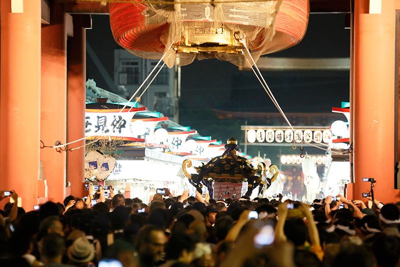Esta tradición continúa hoy, y se carga con el mikoshi por los 44 barrios de que consta la zona de Asakusa, para ahuyentar las desgracias y pedir la bendición divina.