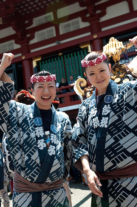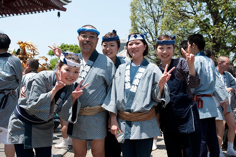 A los participantes en el festival se les llama ujiko, y pertenecen a diversos barrios de los 44 que forman la zona. Se podría decir que el colorido hanten (chaqueta corta) que usan los ujikos reunidos en el templo Sensōji, provenientes de cada barrio, es el uniforme de su equipo.