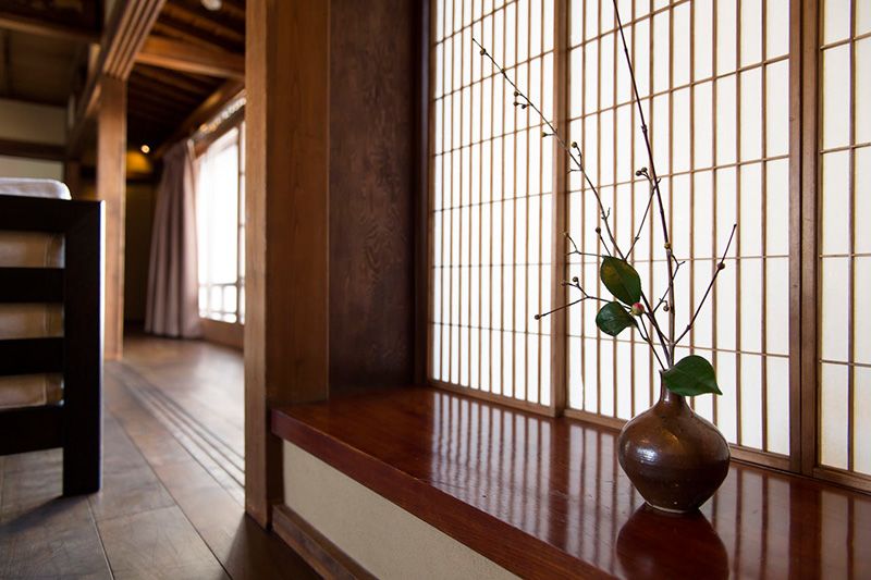Y es en una de ellas donde encontramos el edificio de dos plantas que ocupa la posada Yanaseya, desde cuyo piso superior puede contemplarse el río Yoshino. Edificado en la era Taishō, está compuesto por dos construcciones: la principal, de madera, y su imponente almacén, con muros de estuco. Los residentes de la zona dicen, con toda la naturalidad del mundo, que este edificio es de los nuevos, a pesar de que ronda el siglo de antigüedad. A diferencia de Europa, donde resulta del todo normal, este barrio representa un ejemplo único del paso del tiempo en Japón.