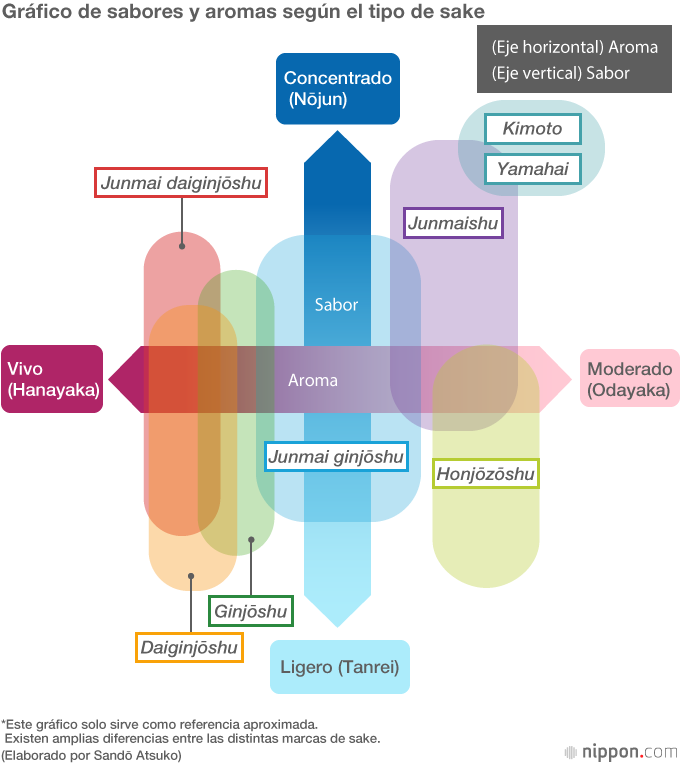 Debemos advertir que existen grandes diferencias entre cada variedad de sake y, por lo tanto, el gráfico solo sirve para obtener una idea aproximada.