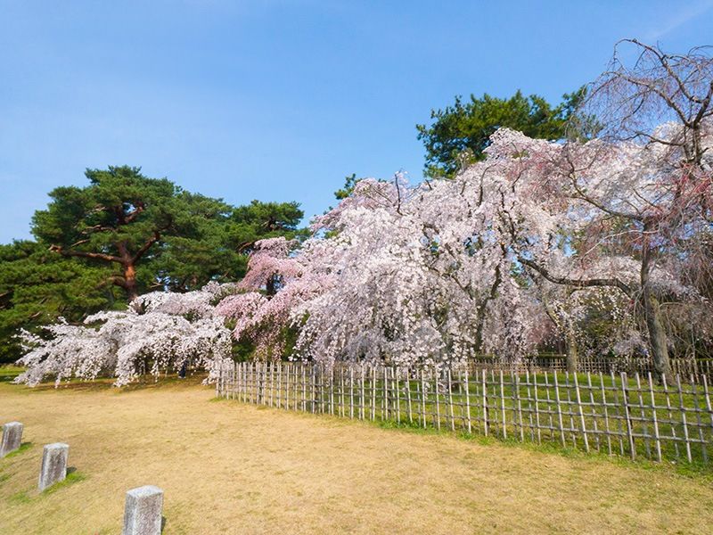Los cerezos de la variedad shidarezakura situados en las ruinas de la antigua residencia de la familia Konoe, una de las cinco familias nobles que descendieron del clan Fujiwara, suelen florecer un poco antes de mediados de marzo y que también reciben el nombre de itozakura (cerezos del hilo), son especialmente famosos. El lugar se encuentra en el área noroeste del parque donde florecen también numerosos itozakura junto a otras variedades plantadas en el lugar como el yaebenishidarezakura.