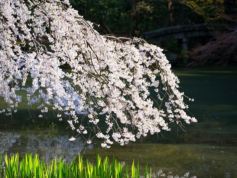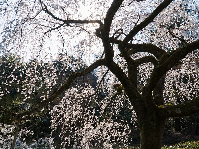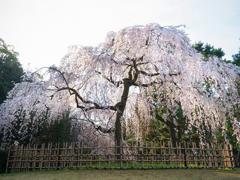 La plena floración de los cerezos itozakura en el parque imperial de Kioto anuncia la llegada de la primavera.