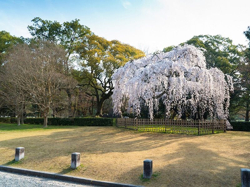 El parque imperial de Kioto ocupa un amplio espacio de 700 metros de este a oeste y 1,3 kilómetros de norte a sur en el mismo centro de la antigua ciudad. Hasta el período Edo (1603-1868), aquí se encontraba el palacio del emperador y las estancias de los miembros de su corte. Más tarde estos terrenos fueron arreglados para su conservación entre los períodos Meiji y Taishō después de que el monarca trasladase su lugar de residencia a Tokio. En 1949 fue designado como Parque Nacional, y hoy es un espacio al que la gente de Kioto y los turistas acuden para pasear y relajarse. Es también uno de los parques más concurridos en primavera, donde florecen cerca de 1.100 cerezos de variedades como la shidarezakura o satozakura, entre otras.