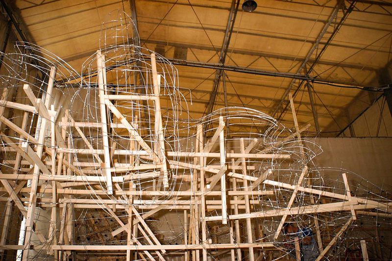 Estructura de bambú y alambre de una carroza nebuta. (© Asociación de Turismo y Convenciones de Aomori)
