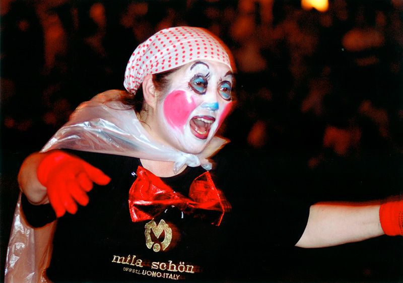 Un bufón baketo contribuye con su llamativo maquillaje al ambiente juguetón. (© Asociación de Turismo y Convenciones de Aomori)