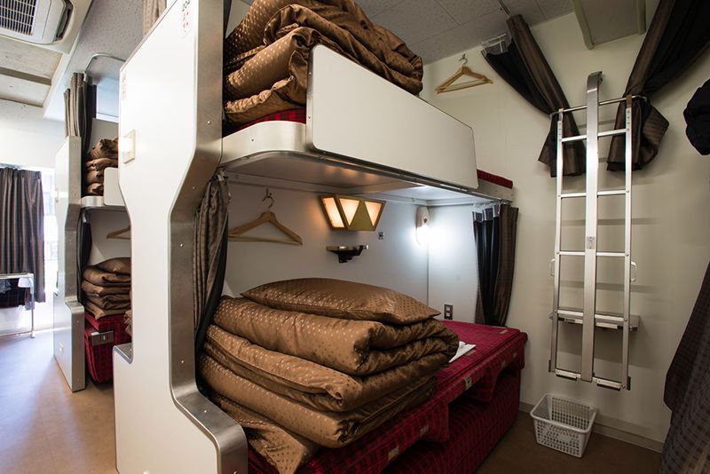 Las literas en la habitación de estilo dormitorio tienen las escaleras originales de Hokutosei.