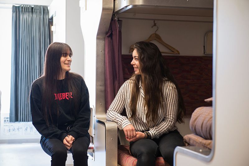 Los pasillos están dotados con asientos plegables fijados a las paredes y las mesas en las habitaciones están equipadas con el abrebotellas tan familiar para los pasajeros de antaño. Los fans del tren Hokutosei seguramente encontrarán una gran satisfacción en el cuidado que se ha tomado para recrear en cada detalle la atmósfera de su amado tren nocturno en el albergue.