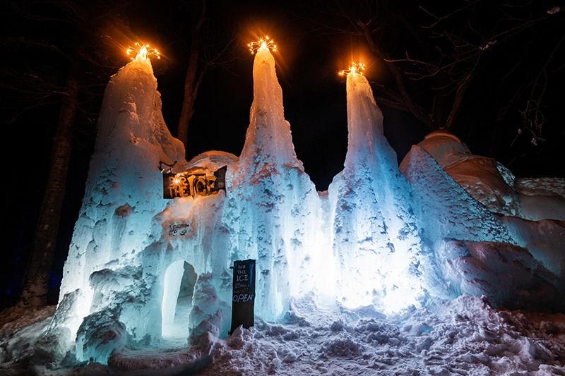 De 6:30 a 9:00 cada noche durante su ejecución, la sede del Shiretoko Ryūhyō Festival está iluminada, lo que le da un aire fantástico. Los aspectos más llamativos de este año son la cúpula de hielo y las torres de hielo creadas por el artista plástico Takenaka Hirohiko.