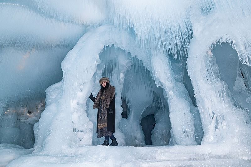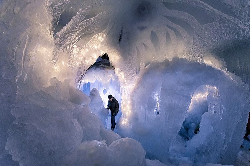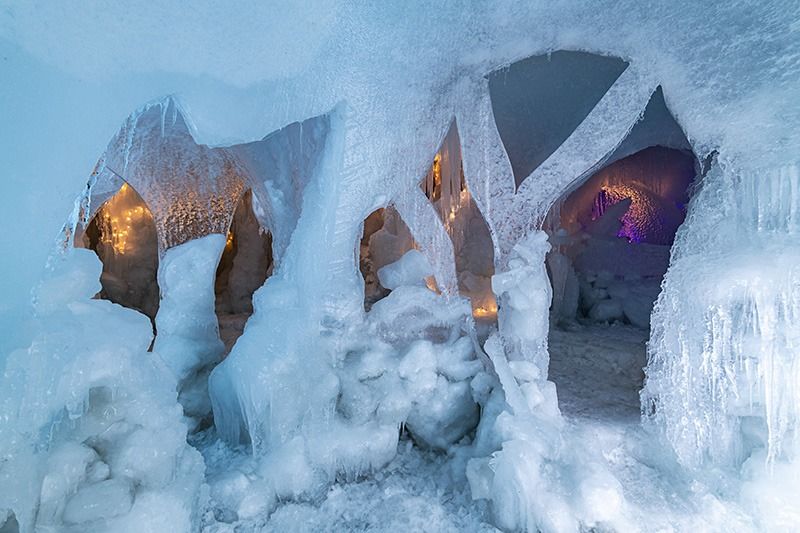 Al entrar en la cúpula de hielo, uno se encuentra con una caverna de hielo que sigue y sigue, como un laberinto. Las formas de las paredes de la cúpula y los accesorios dentro de ella estimulan los sentidos como si cada una tuviera su propia conciencia, y no parecen en absoluto hechas por el hombre. Además de estar más templado el interior que en el exterior, hay un puesto de refrigerios llamado “Bar the Ice” donde ofrecen bebidas calientes y cócteles originales. El visitante puede tomarse su tiempo para atravesar la cúpula y detenerse allí para descansar.