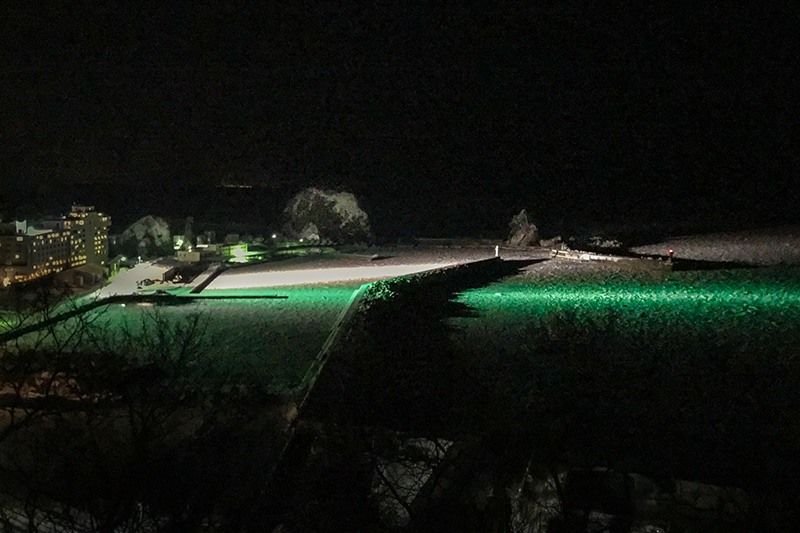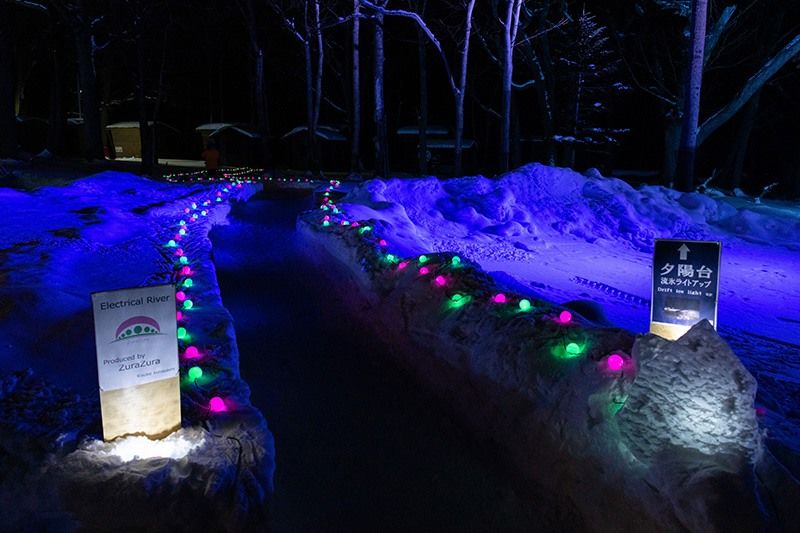 El Electrical River, una cadena de luces decorativas que se iluminan formando diversos patrones al reaccionar ante las personas que pasan, se encadena a lo largo del camino hacia el mirador Yūhidai ubicado a un lado del campamento. El mirador ofrece la primera vista del mundo, según dicen, del hielo iluminado a la deriva, y bien vale la pena visitarlo.