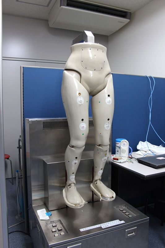 Système d’évaluation de la pression des vêtements. Cet appareillage permet de simuler divers mouvements, comme la marche. Quand on lui met des sous-vêtements, les sensors indiquent les zones de pression et de frottement, ce qui permet d’optimiser le confort.