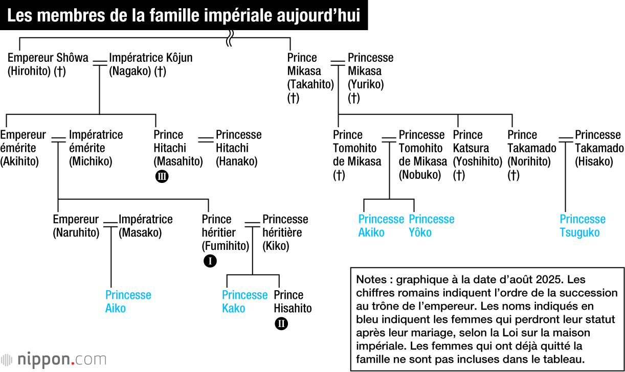 Cependant, en raison de la diminution de la taille de la famille impériale et de l’absence d’héritier mâle dans la jeune génération, un débat public a eu lieu sur la question de savoir s’il fallait permettre à la princesse Aiko d’accéder au trône. La naissance du prince Hisahito, neveu de l’empereur Naruhito, en 2006, a toutefous mis ces discussions en suspens. Bien que l’opinion publique soit largement favorable à ce que la princesse Aiko succède à son père, aucune initiative n’a été prise au sein de la Diète japonaise pour modifier le statu quo.