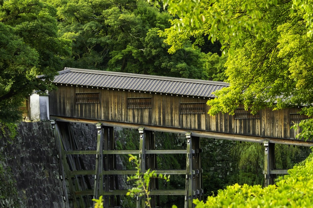Ohashirôka, un pont couvert que le seigneur du château empruntait pour se rendre de sa résidence jusqu’au jardin, est reconstruit en 2006 selon les plans de l’époque d’Edo. Cette structure présente un aspect rarement observé dans tout le pays, avec une inclinaison d’environ 11 degrés.