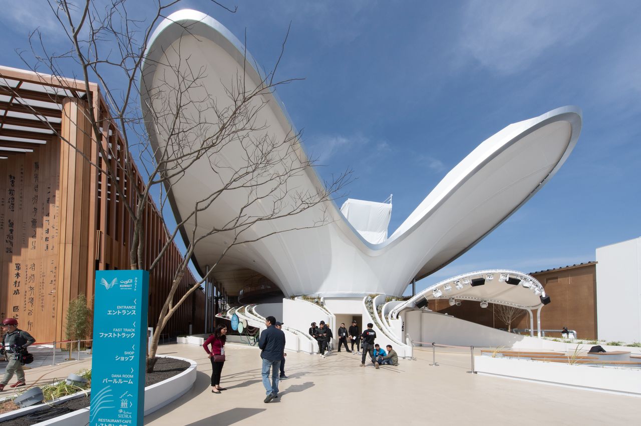 La conception de ce pavillon, qui ressemble à des ailes déployées, représente un vol vers l’avenir et un accueil à bras ouverts pour les visiteurs. La nuit, des lumières colorées apportent la « lumière du futur » à la structure.