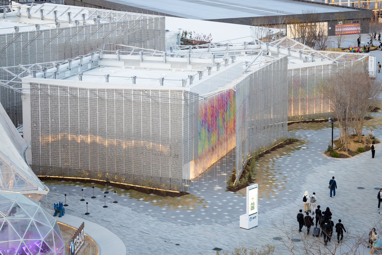 Les rideaux filiformes qui recouvrent le pavillon NTT ne bougent pas seulement au gré du vent, mais également automatiquement lorsqu’une intelligence artificielle analyse les sourires des visiteurs. Ce pavillon a ainsi été conçu pour refléter à l’extérieur les émotions positives des visiteurs qui se trouvent à l’intérieur.