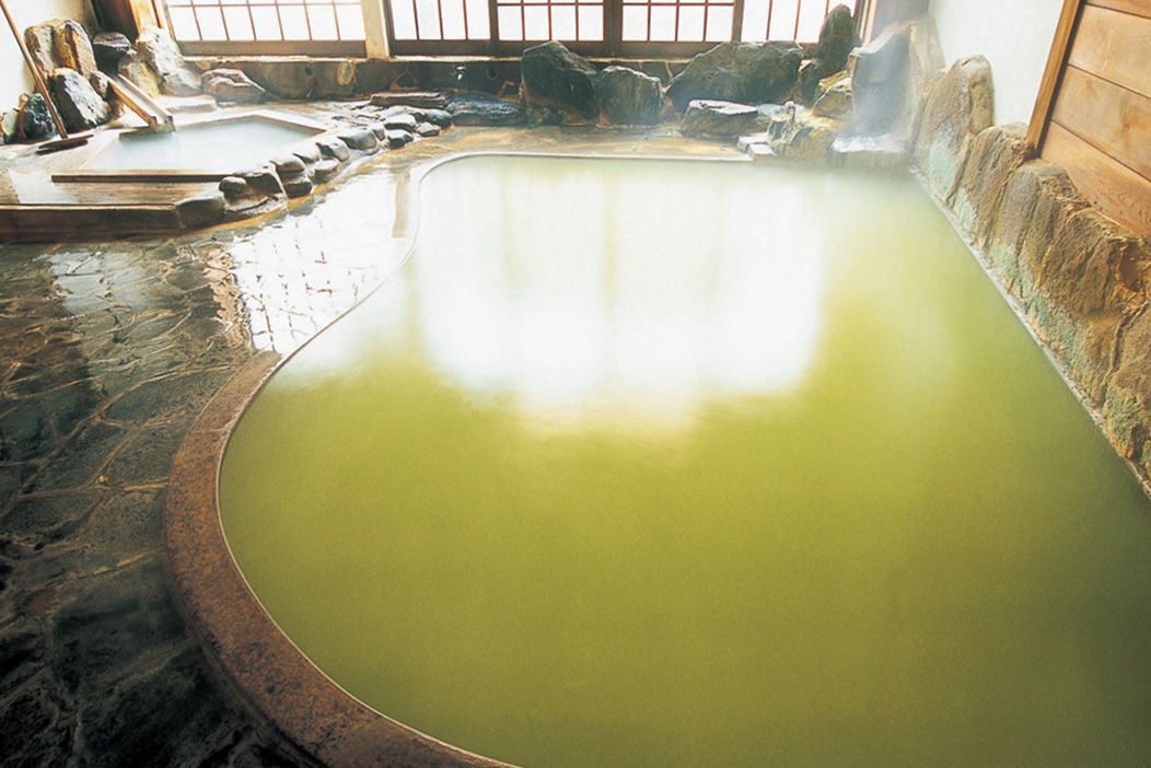 Dans l’auberge Yusaya, les visiteurs peuvent s’immerger dans trois différents types de bains : les eaux alcalines de l’Unagi-yu (« bain d’anguille »), les eaux sulfureuses du Taki-no-yu (« bain de la cascade ») et l’Akane-no-yu (« bain de garance »). L’Unagi-yu est particulièrement réputé et se distingue également par sa couleur changeante qui, selon les conditions météorologiques ou la température ambiante, peut être opaque ou vert émeraude...