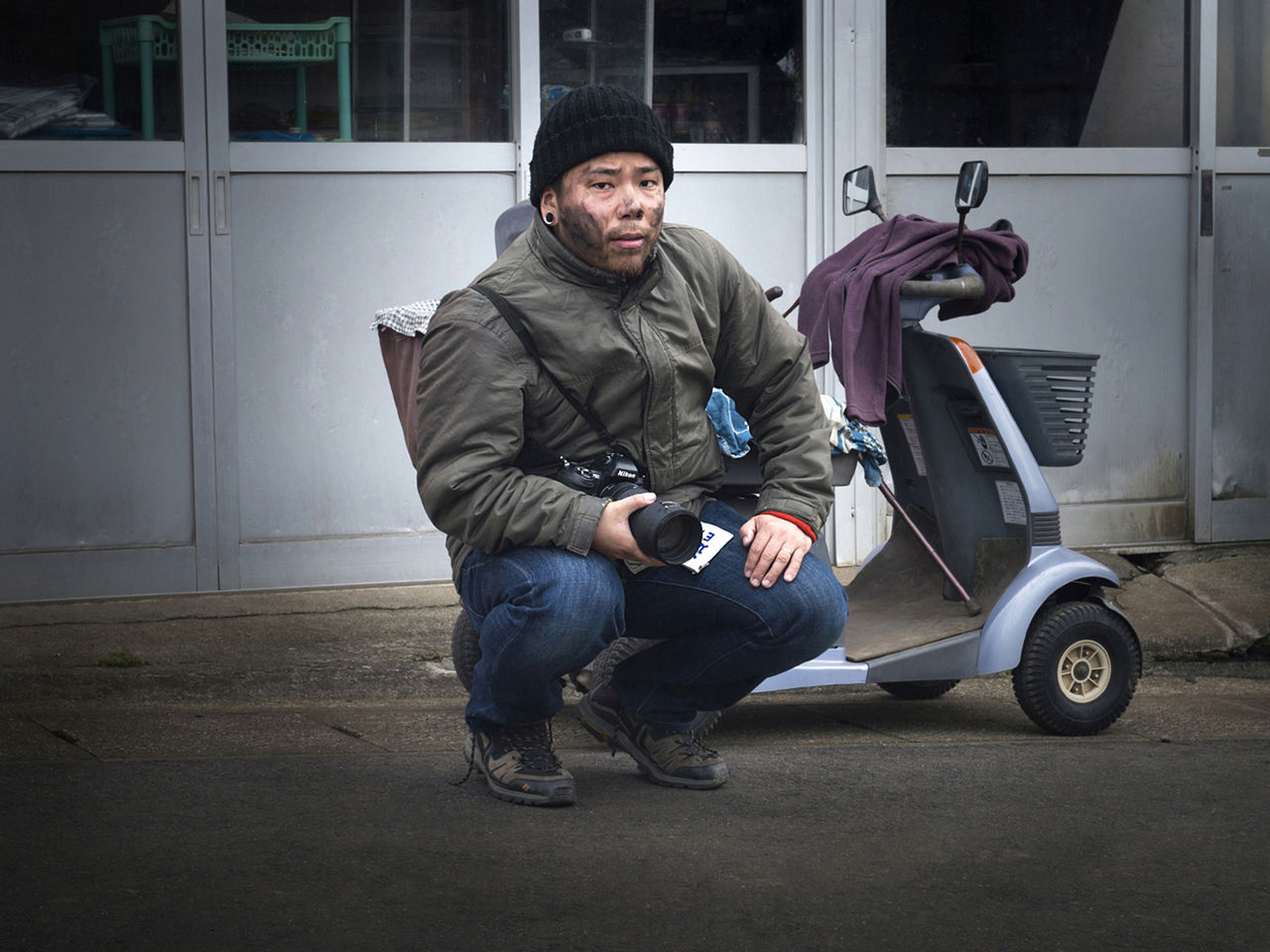 L’auteur de l’article, Kuroiwa Masakazu, pendant sa visite du festival Hetomato, le visage enduit de suie. Que lui est-il arrivé ?