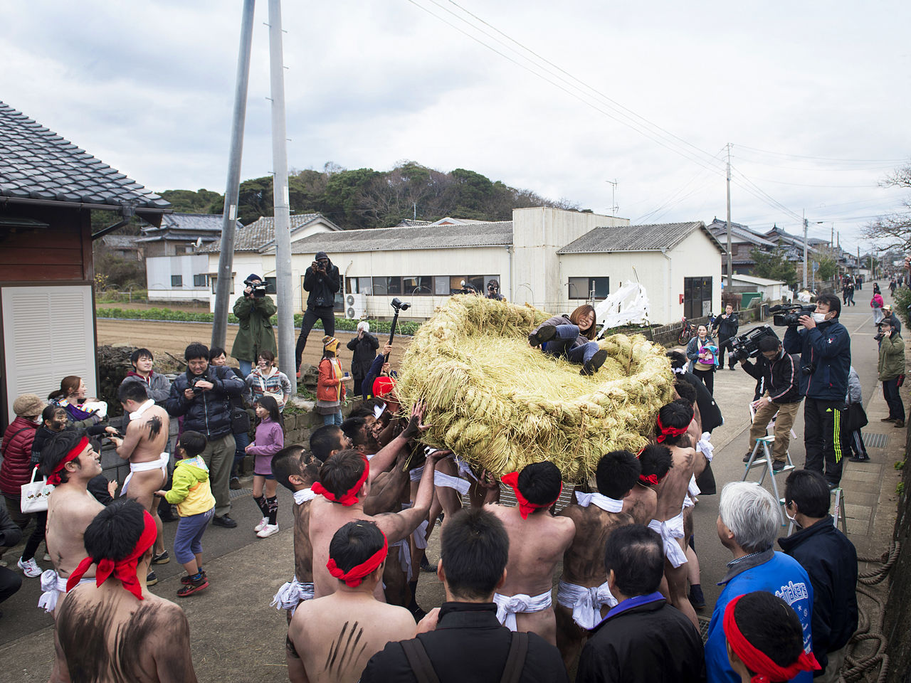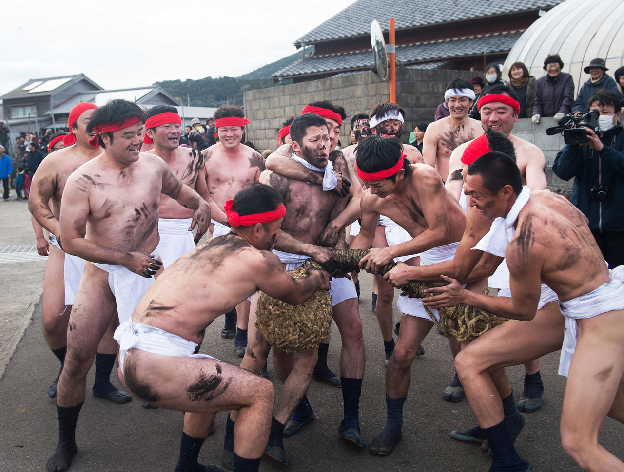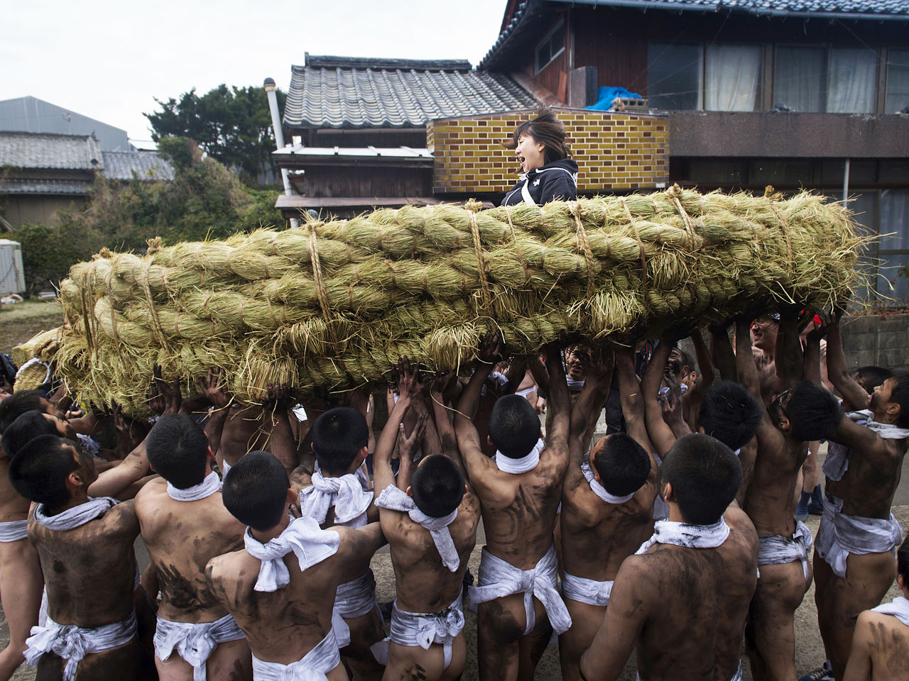 Les rues se remplissent alors de jeunes hommes couverts de suie qui se battent frénétiquement pour la possession d’un waradama, une lourde boule de paille faite d’une corde à enroulement épais, dans un jeu appelé tamaseseri. Ce qui suit ressemble à une compilation des scènes de festivals les plus bizarres. Les choses bougent très vite, et j’ai dû redoubler d’efforts pour suivre le rythme.