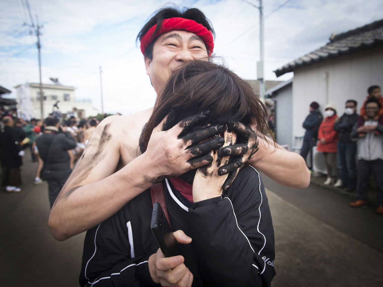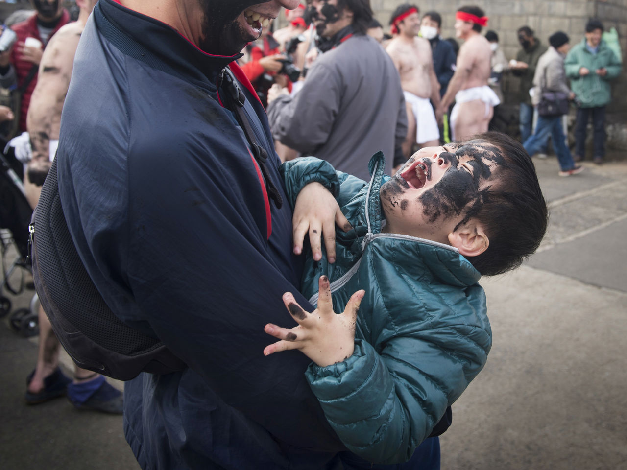 Pendant cette partie agitée des festivités, des spectateurs innocents sont enduits de suie, connue localement sous le nom de hegura. Les femmes crient et courent désespérément pour échapper aux griffes sales des hommes barbouillés, tandis que de nombreux enfants sanglotent de manière incontrôlable sous le choc. J’ai subi plusieurs fois ce traitement en prenant des photos. Les victimes, sonnées et confuses, recevraient une bonne année de chance et une protection contre la maladie.