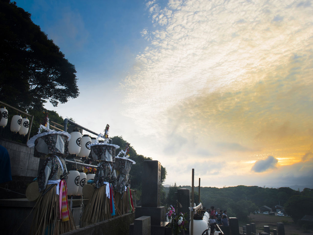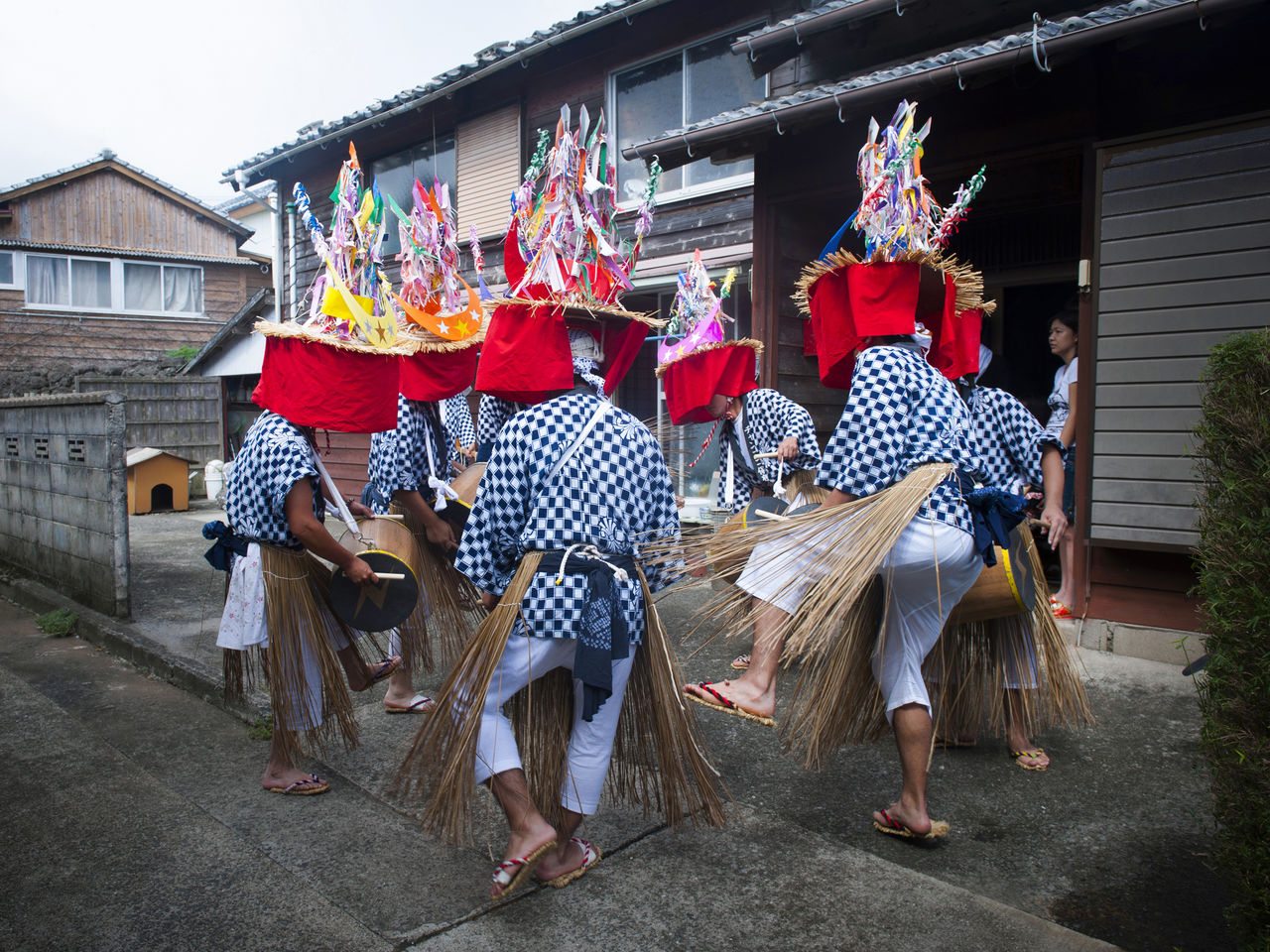 Exécution de la danse chankoko sur l’île de Fukue pendant la période de l’obon afin d’apaiser les esprits des morts.