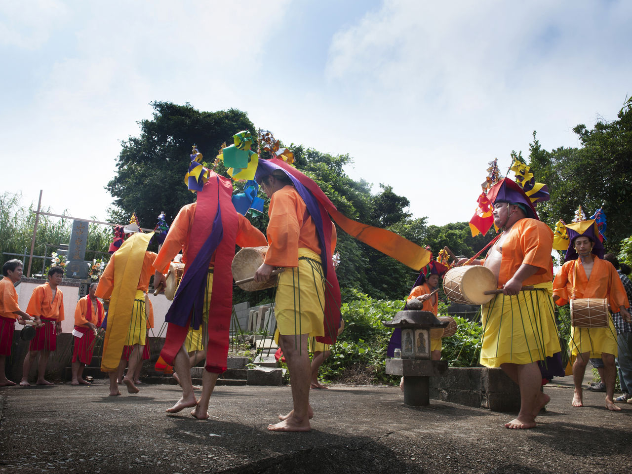 Les costumes colorés et les tambours battants font partis des attractions des danses ômondê de l’île de Sagano.