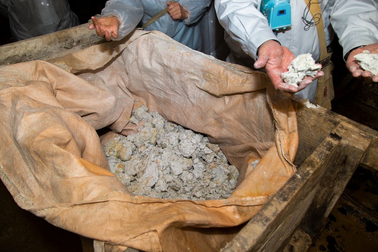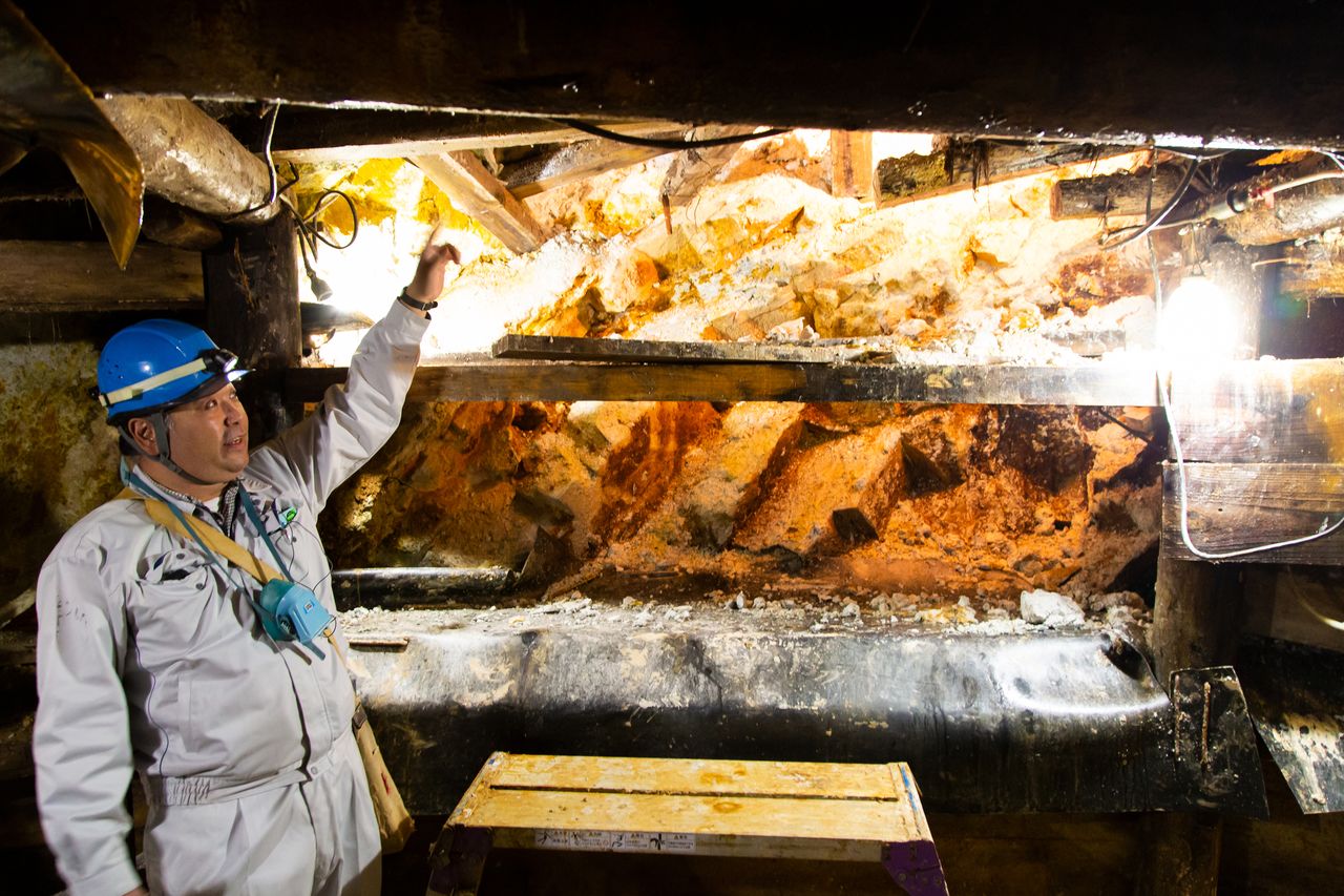 C’est à Shitara, à l’ouest de Tôei, que se trouve la mine de Tsugu, dont le puits de mine légendaire de Shingen – du nom du seigneur féodal Takeda Shingen, connu pour en avoir extrait une énorme quantité d’or – existe encore aujourd’hui. Inspiré par ce dernier, le grand-père de Jun’ichi a commencé à creuser dans les montagnes d’Okumikawa. Même s’il n’a pas trouvé d’or, il a fait une découverte non moins intéressante : de la séricite dans la mine d’Awashiro.
