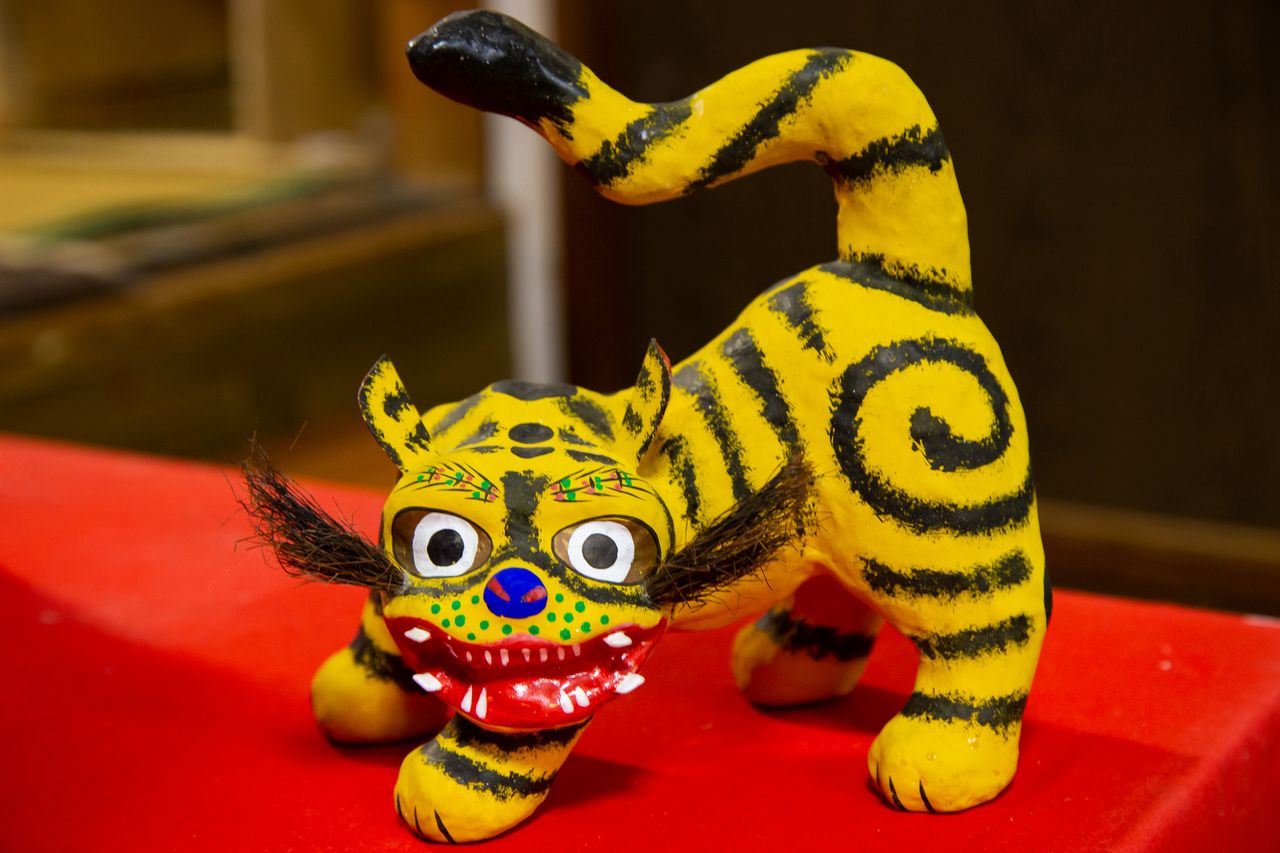 Les hariko, ce sont aussi des objets de bonne augure, dont le plus connu est à l’effigie du tigre. Encore aujourd’hui, pour de nombreux parents, l’animal symbolise un enfant robuste et en bonne santé. En temps de guerre, ces figurines étaient souvent disposées à l’extérieur des maisons des familles dont les fils avaient été envoyés au front. À la manière du tigre qui revient toujours dans sa tanière après la chasse, ils porteraient bonheur à ces jeunes hommes qui retrouveraient les leurs sains et saufs.