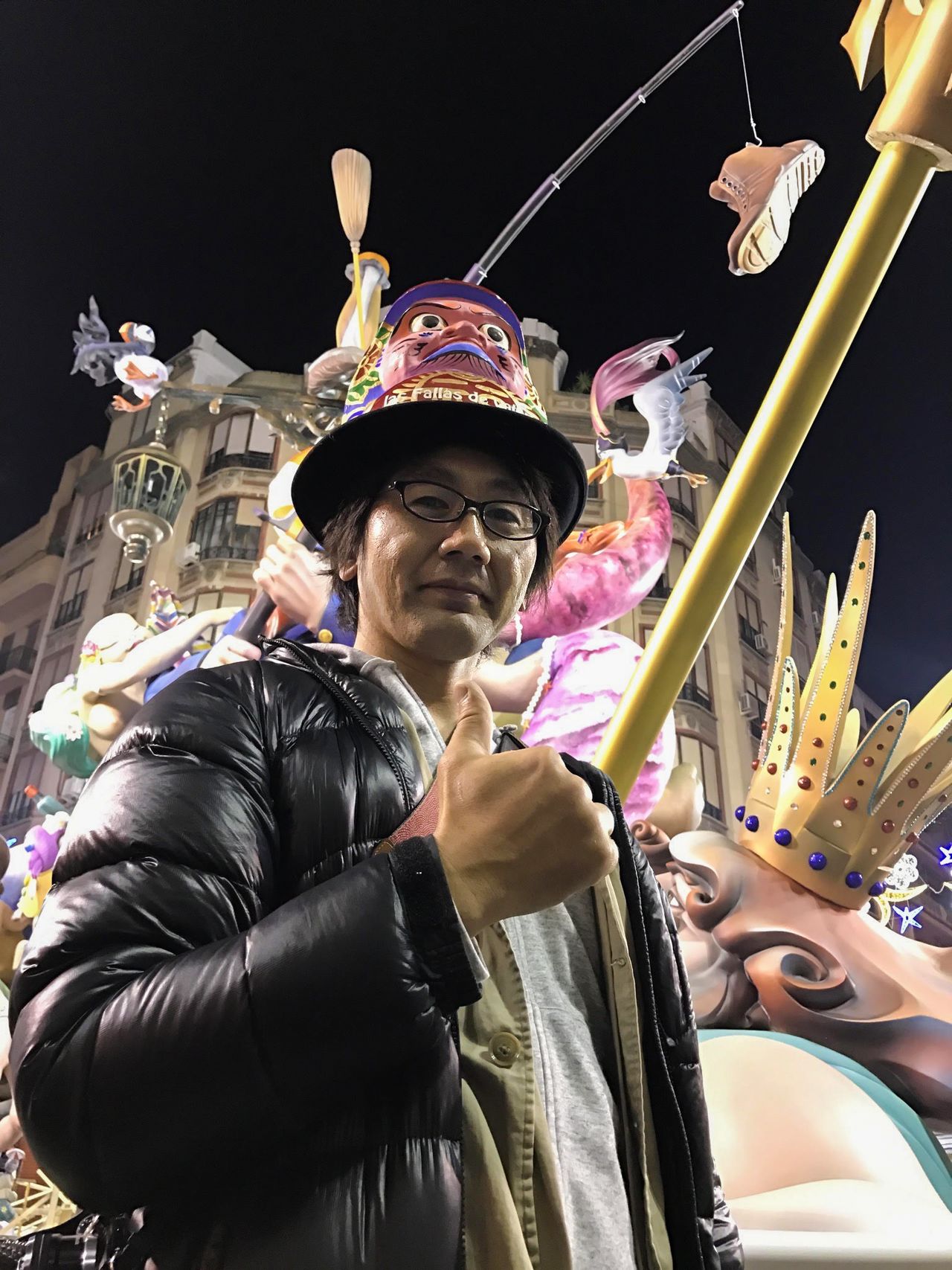 Hashimoto aux Fallas de Valence, arborant un chapeau hariko (photo avec l’aimable autorisation de Hashimoto Shôichi)