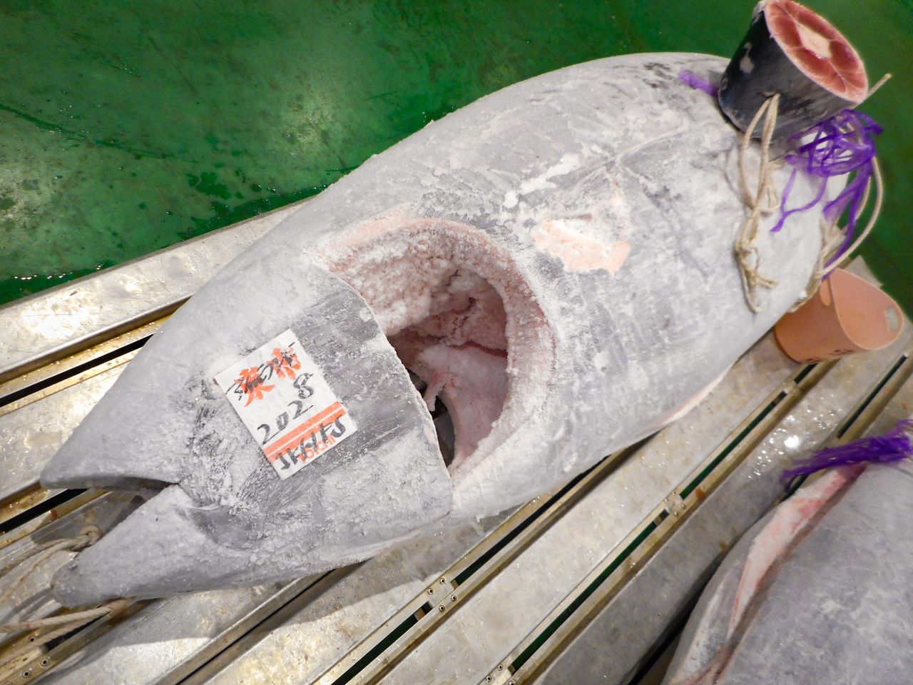 Le thon rouge du Nord (kuro maguro), pêché au large de l’Irlande et congelé comme celui que l’on voit ici, fait partie des garnitures de sushis les plus appréciées au Japon. (Avec l’aimable autorisation du marché aux poissons de Toyosu)