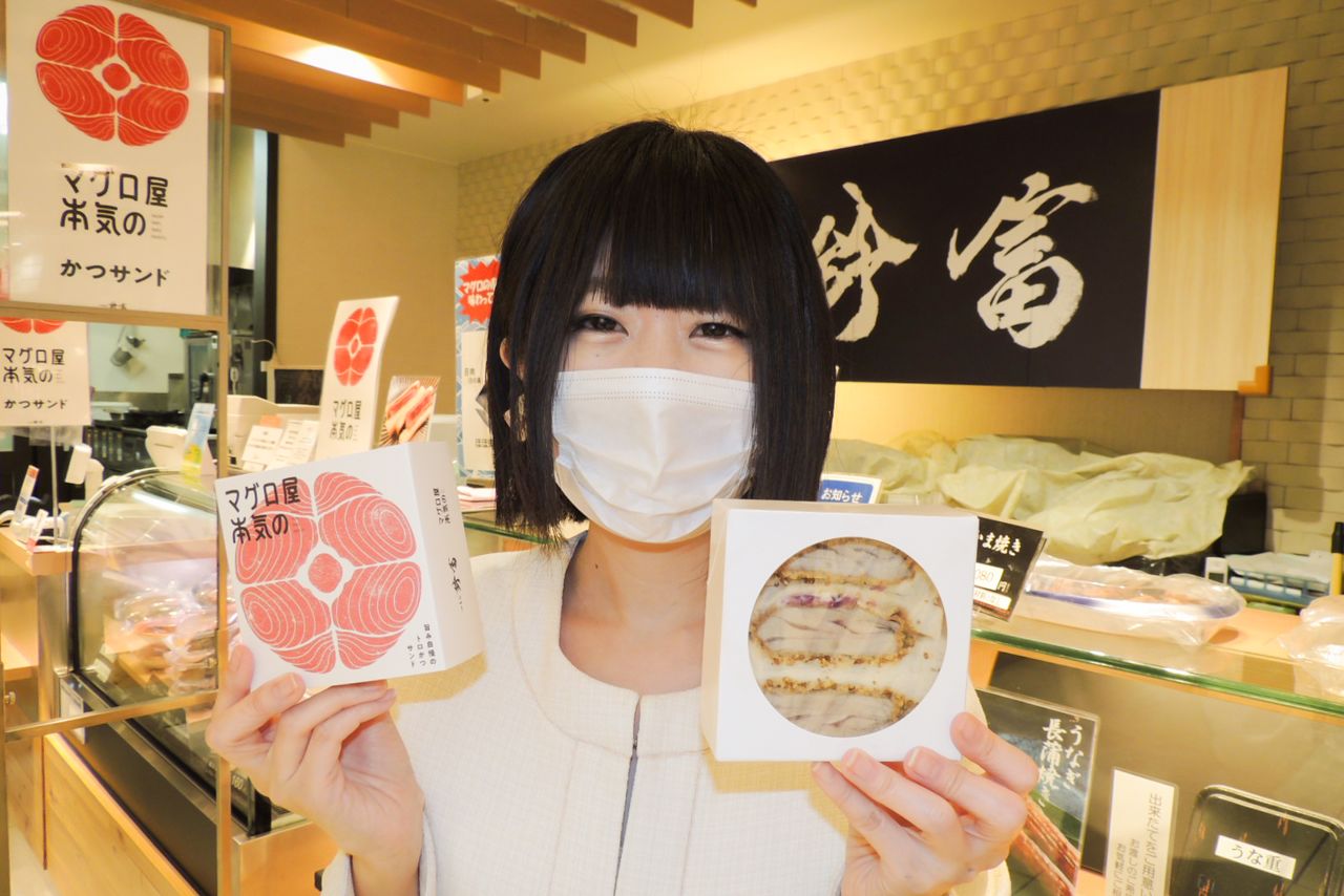 Les sandwichs au thon pané sont présentés dans un emballage agrémenté d’un motif représentant un thon vu en coupe et d’une phrase bien visible précisant qu’il s’agit d’un « produit sérieux préparé par une maison spécialisée dans le thon ». Ils sont garnis de tranches panées de thon, soit de sa partie rouge, appelée akami, soit de sa partie la plus grasse qui fond littéralement dans la bouche, appelée toro. Chaque paquet contient trois sandwichs et un peu de sauce. Les tranches d’akami sont servies saignantes afin de leur conserver leur belle couleur et leur saveur umami (la cinquième saveur fondamentale de la cuisine japonaise avec le salé, le sucré, l’acide et l’amer).