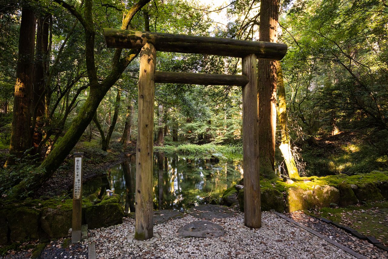 La déesse serait apparue sur la pierre sacrée située au centre de cette source, aujourd’hui connue sous le nom d’étang Mitarashi ou Omitarashi.
