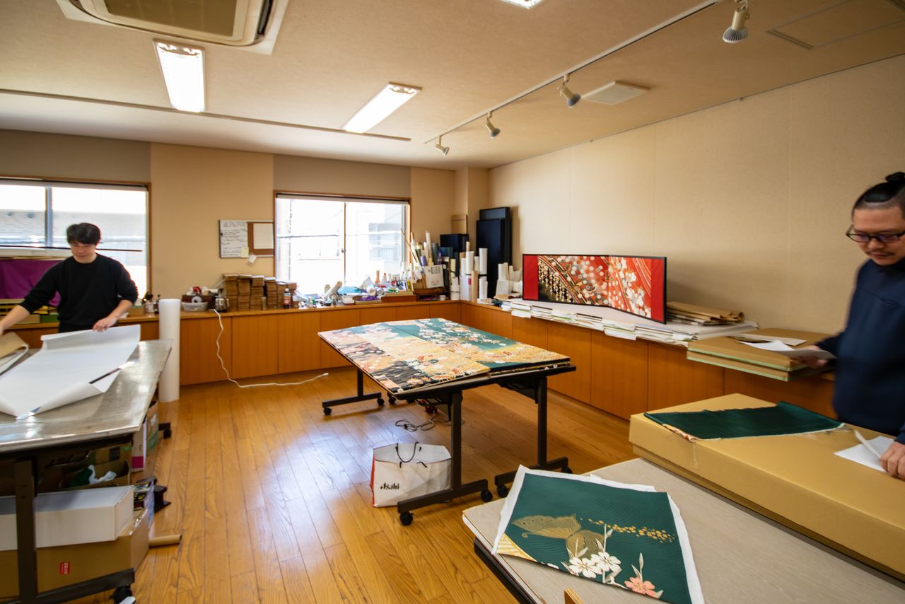 Pour Kataoka Kôto, c’est un plaisir de répondre aux demandes de ses clients. « C’est un vrai bonheur de créer un paravent de toutes pièces », dit-il. Après avoir établi un budget, le personnel travaille étroitement avec les clients pour développer un design. Une fois cette étape franchie, les artisans du premier étage prennent le relais et préparent le cadre, le papier japonais washi sur lequel le motif est peint, et tous les autres accessoires. Cela peut prendre jusqu’à trois mois de créer une œuvre détaillée d’une certaine taille.