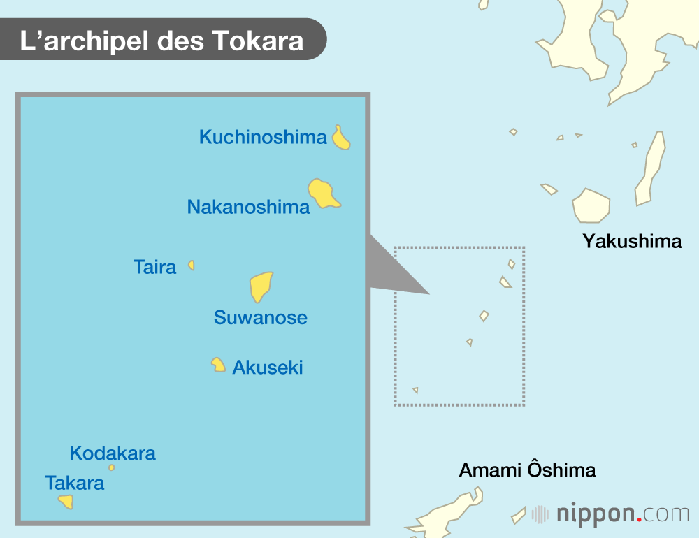 L’archipel des Tokara (préfecture de Kagoshima) s’étend entre les îles Yakushima et Amami Ôshima, dans les eaux de l’extrême sud-ouest du Japon, et se compose de sept îles habitées et cinq inhabitées.