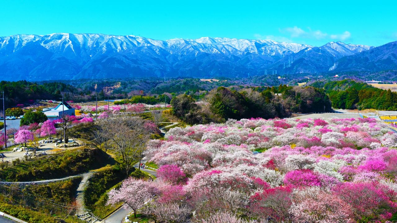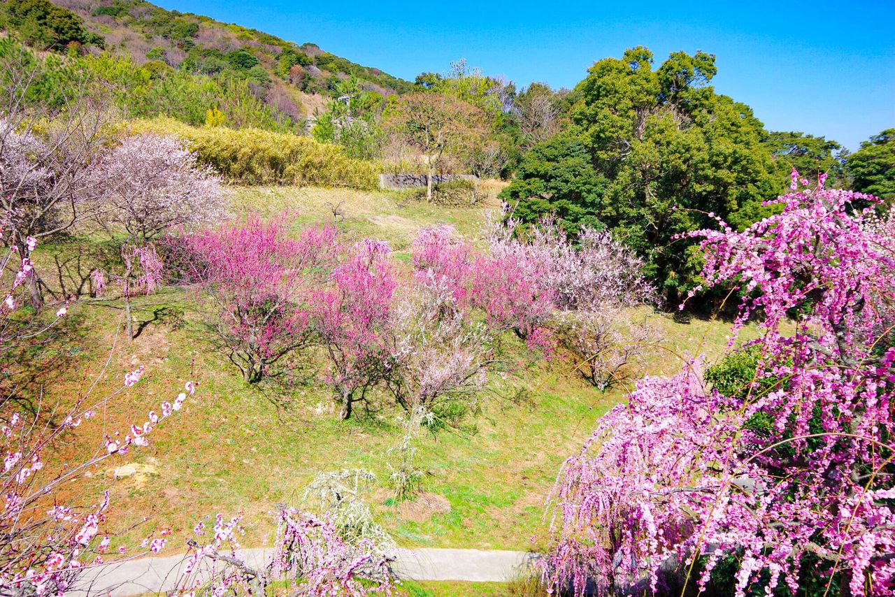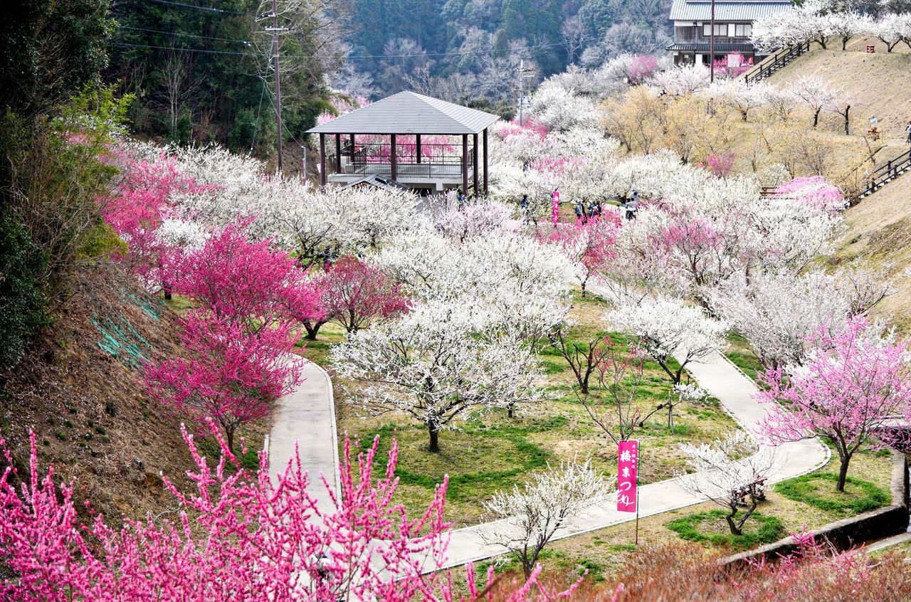Ce vaste parc de 38 hectares abrite 4 000 pruniers appartenant à une centaine de variétés, avec en toile de fond le panorama spectaculaire des monts Suzuka. En 2026, le festival des pruniers en fleur se tient du 21 février au 20 mars.