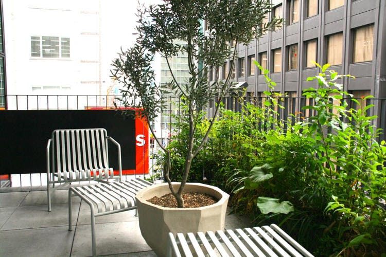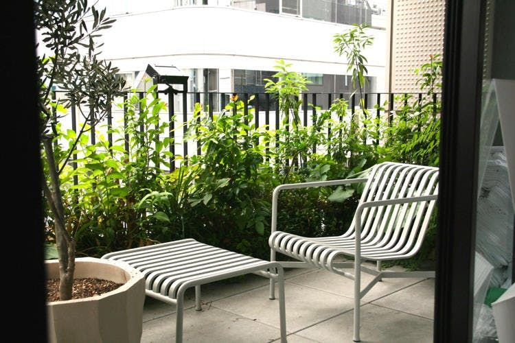 Au fond, une terrasse spacieuse et verte, pour prendre l’air tout en bouquinant.