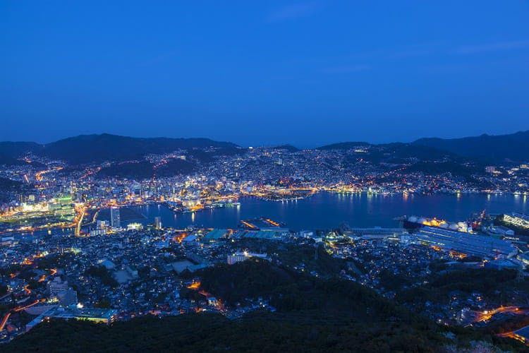 Avec Sapporo et Kita-Kyûshû, la vue nocturne sur Nagasaki a été choisie comme l’une des trois plus belles du Japon en 2018. La topologie de la ville confère à ce paysage une beauté unique, et celui à admirer depuis le mont Inasa est connue sous le nom de « vue nocturne à 10 millions de dollars ». Au sommet de la montagne haute de 333 mètres, accessible par téléphérique, se trouve un pont d’observation vitré. Il offre une vue panoramique, avec le pont Megami illuminé et les rues et les différents édifices de la ville sous vos pieds.